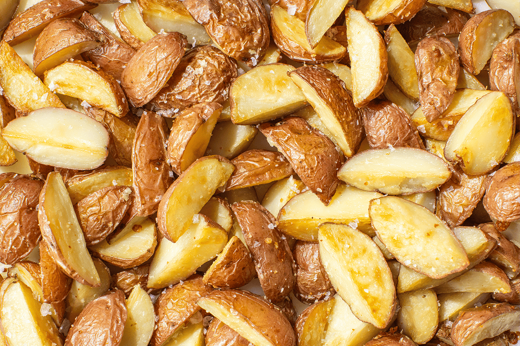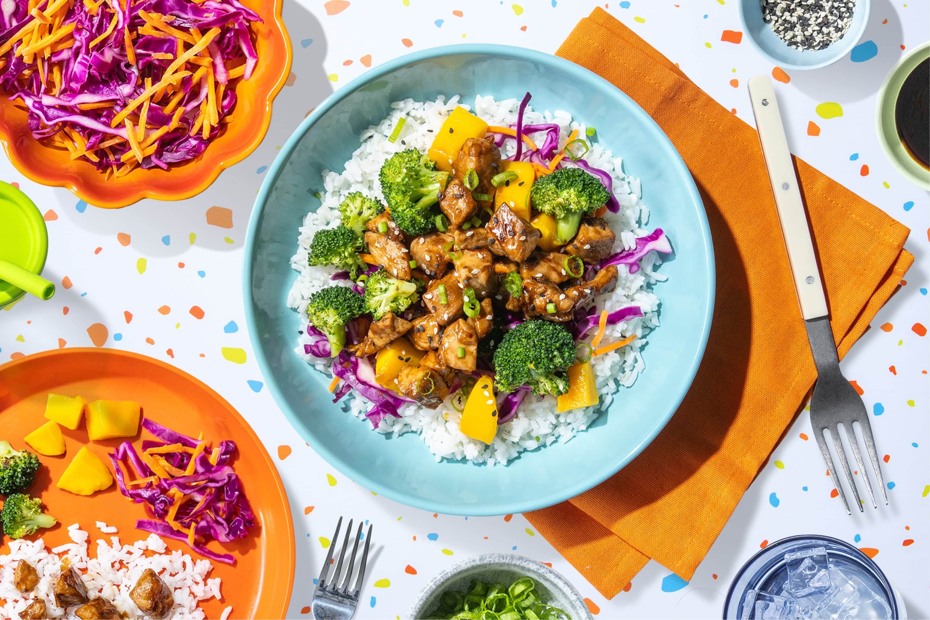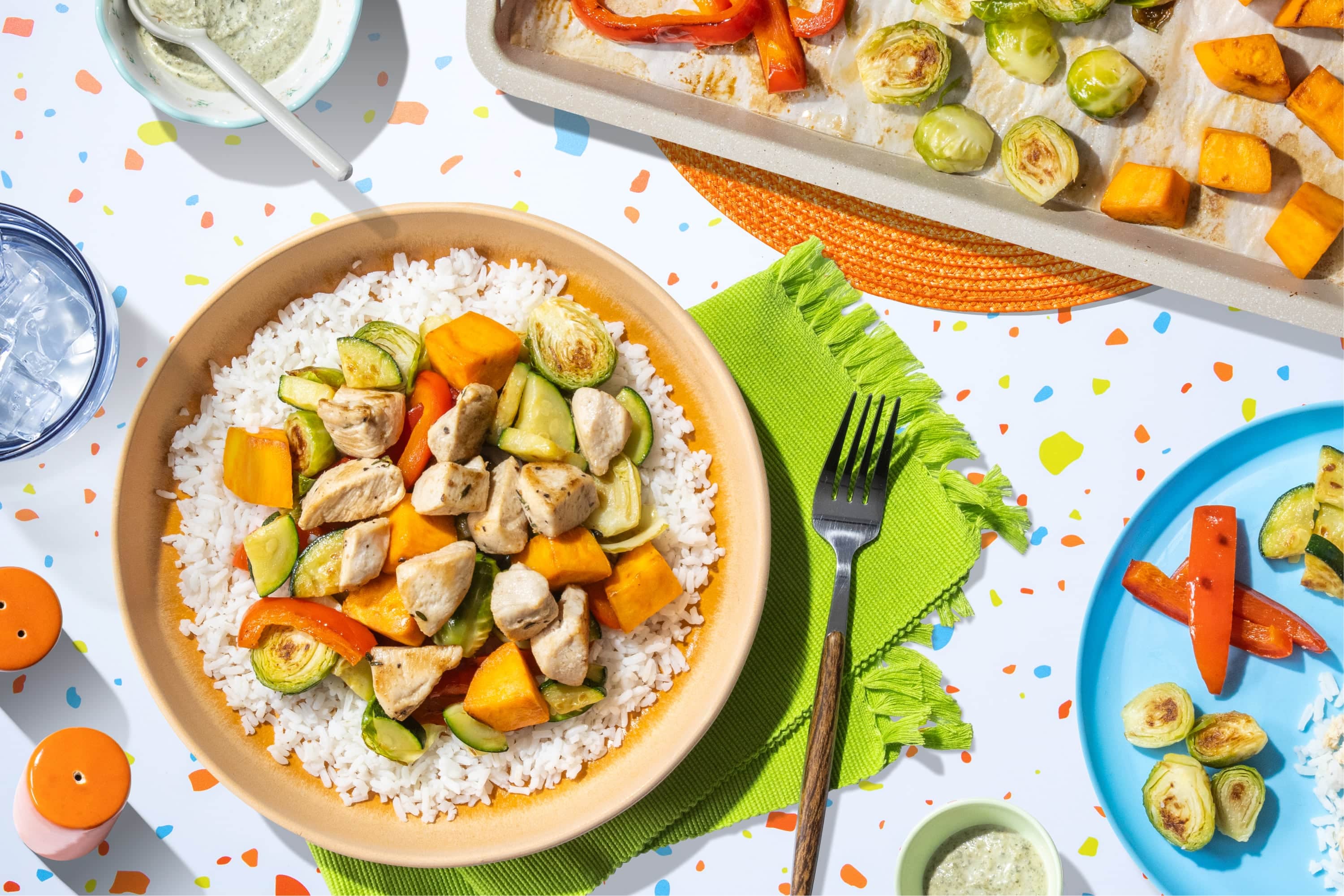 Recipe images are used throughout marketing assets as well as in recipe cards which are sent to customers. Macro ingredients are used as accents throughout to showcase the types of fresh vegetables in meals.