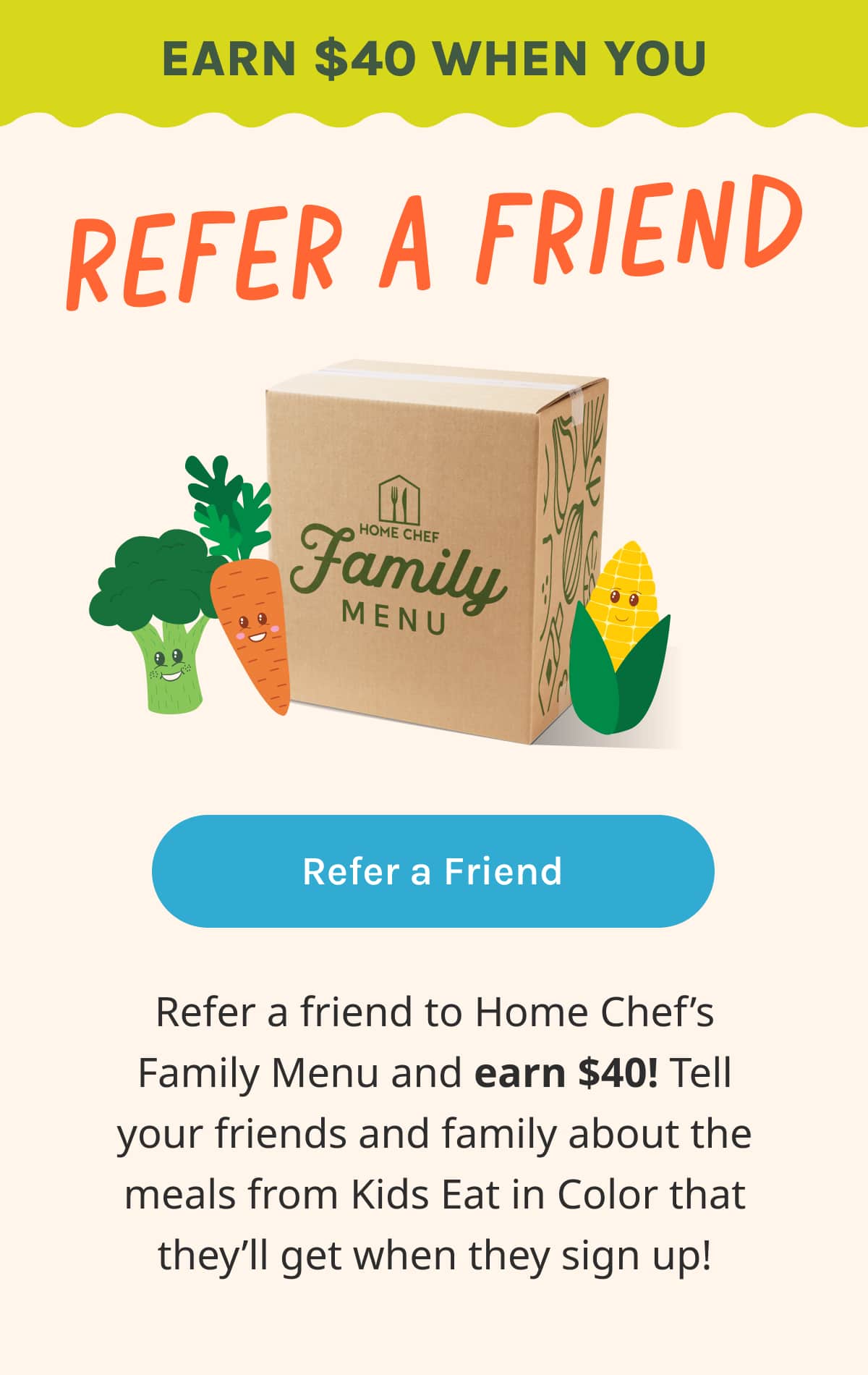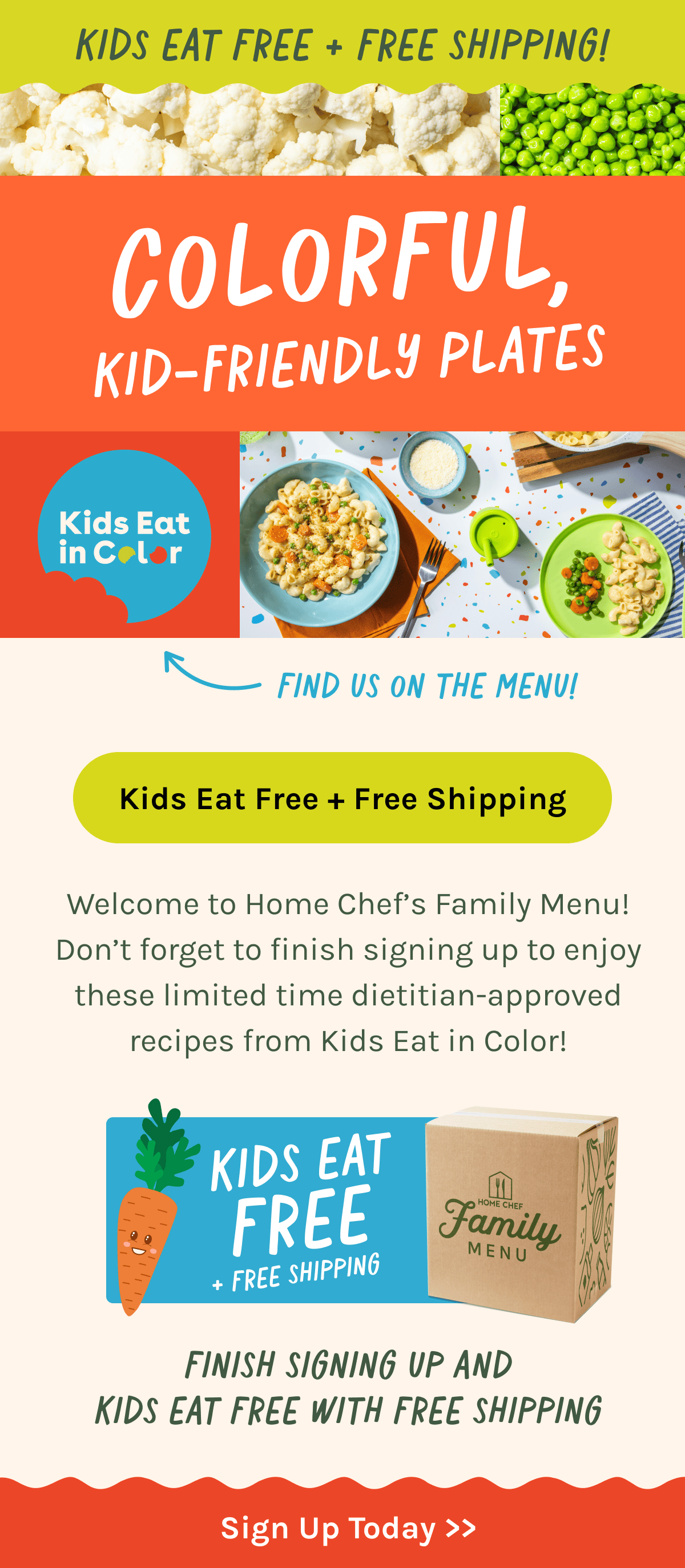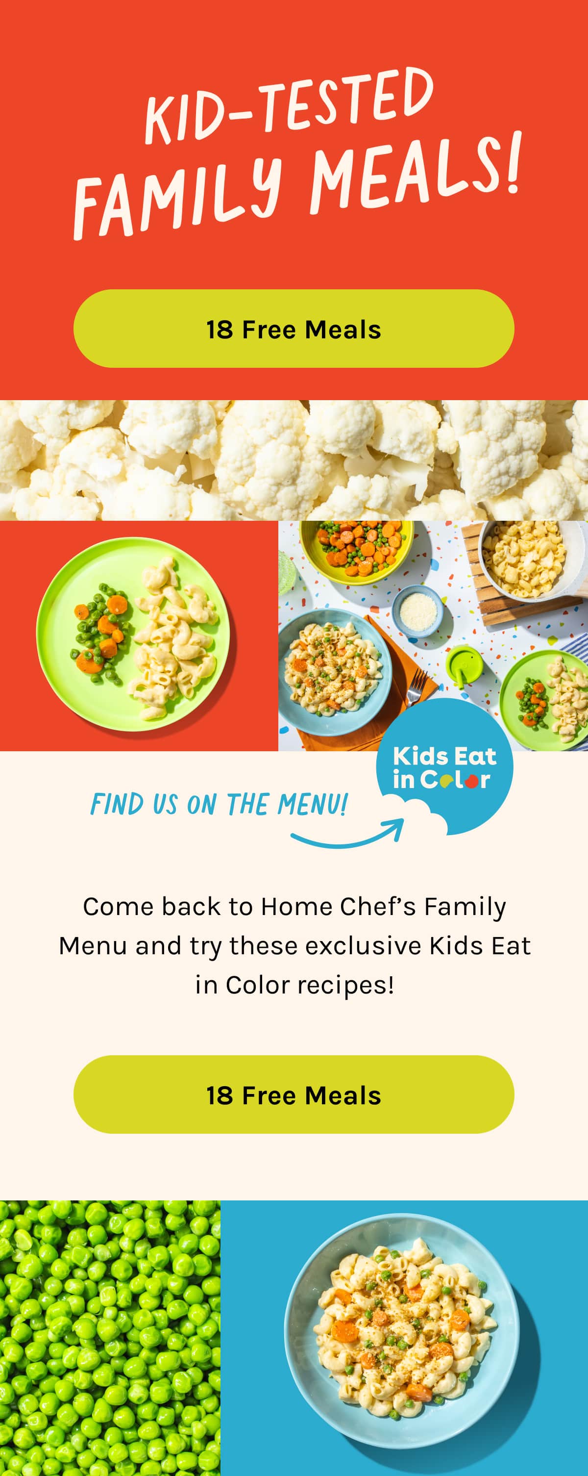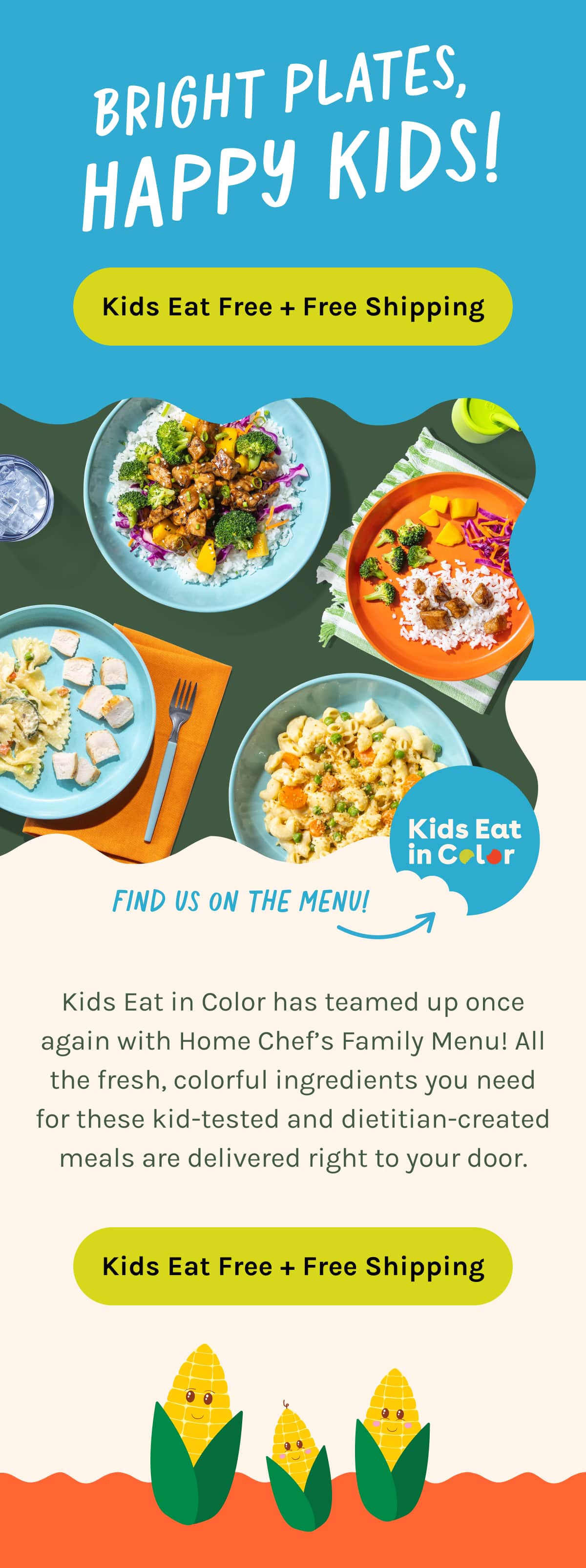 Multiple emails sent from Home Chef highlighting the Kids Eat in Color Partnership.